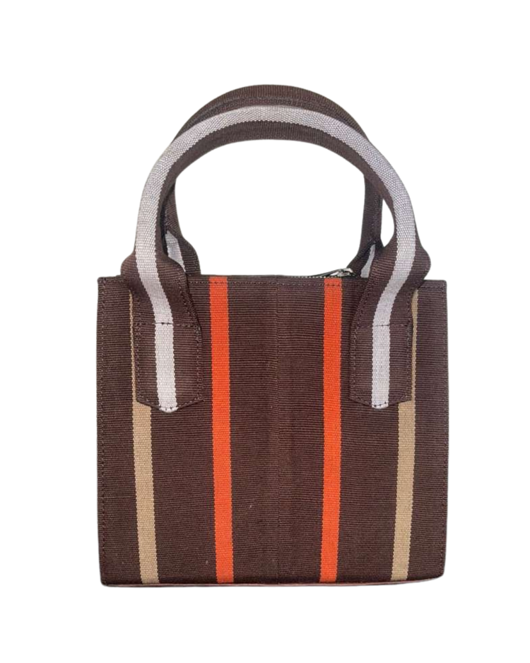 Handcrafted mini tote bag designed by Nigerian artisans with hand-woven Yoruba Aso Oke cotton fabric and genuine leather. Can be styled as a shoulder bag with the included adjustable genuine leather strap.