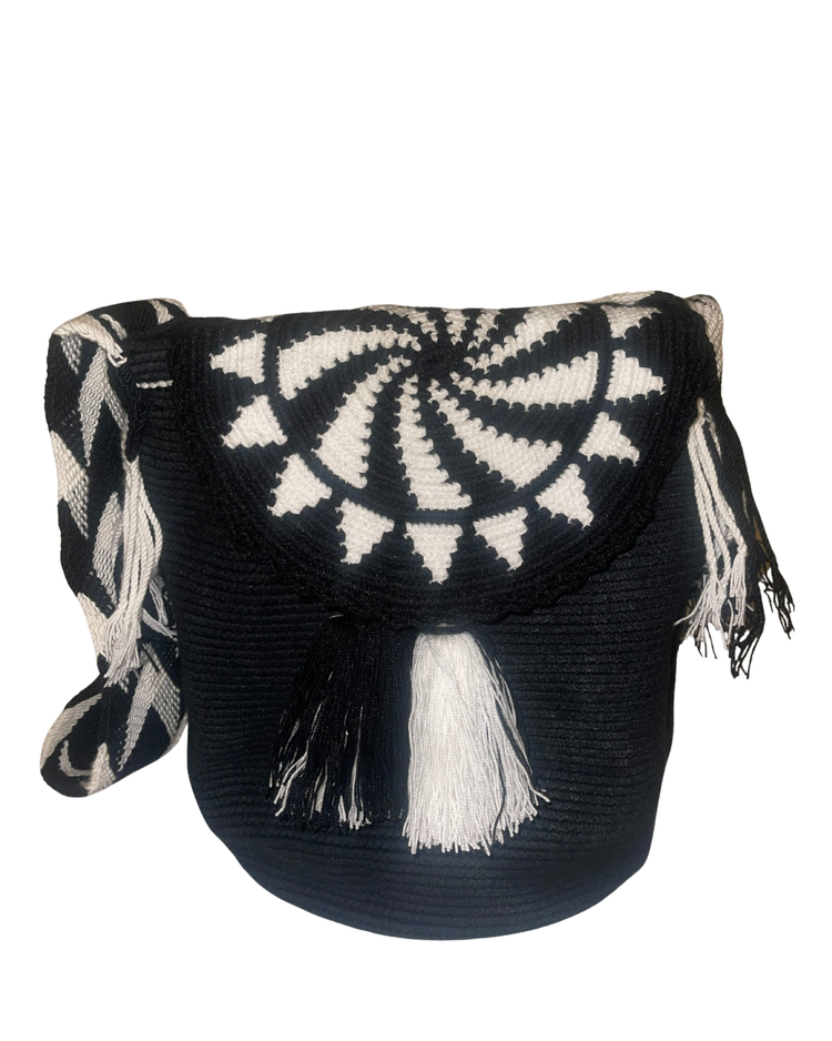Hand-crocheted medium-sized mochila bag, expertly crafted by Indigenous Wayuu artisans in Colombia's Northern Caribbean region.
