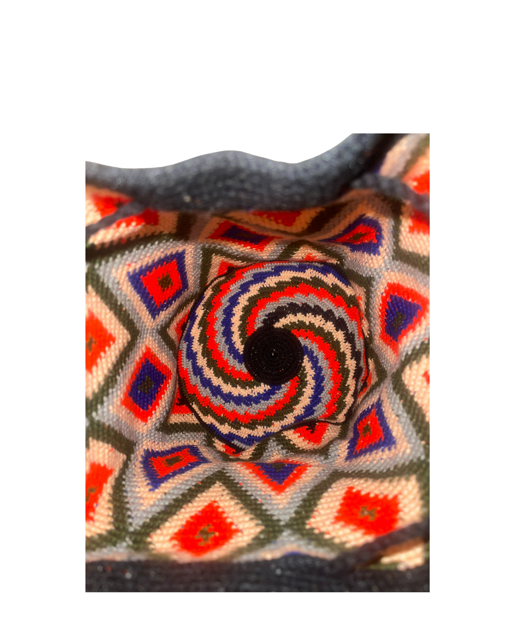 Hand-crocheted medium-sized mochila bag, expertly crafted by Indigenous Wayuu artisans in Colombia's Northern Caribbean region.